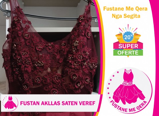 Fustan me qera akllas saten veref / Fustan me qera Segita / Fustan me qera per fejes / Fustan me qera per dasma / Fustan me qera elegant per mbremje / FUSTAN me qera per matura